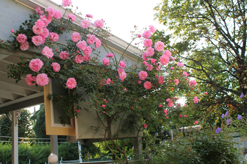 Lovely backyard with beautiful garden for the students to use.